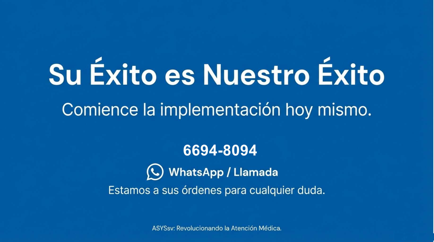 Inicio Asys Medic Innovación Tecnológica Buscamos estar al dia con la tecnologia y los recursos informaticos para brindar mejor servicio a sus pacientes. Llamenos Atención todo el país, por video llamada o por WhatsApp. 6694-8094 Copyright © 2026 [Asyssv.com] | Derechos Reservados.